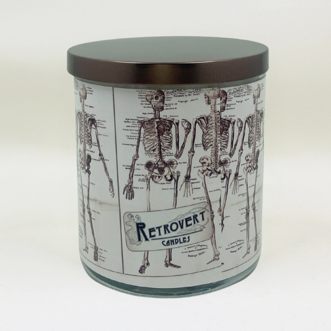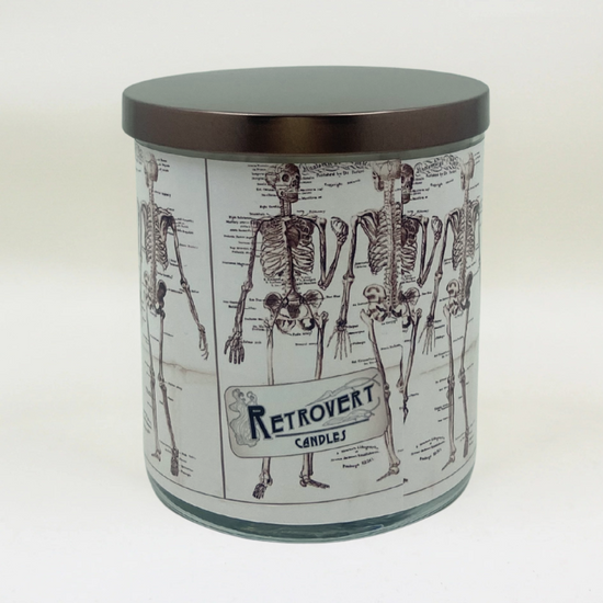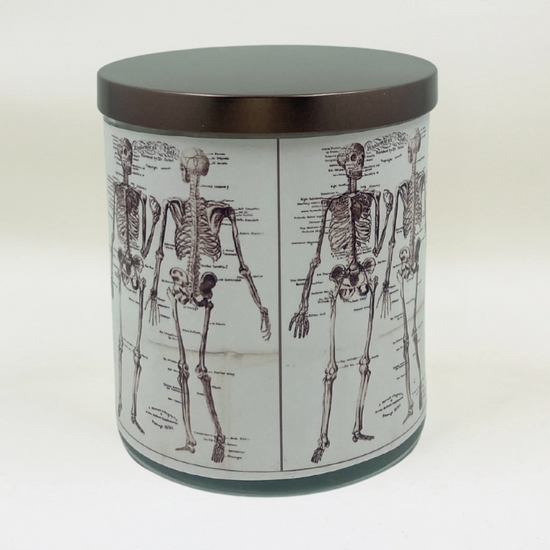 Ignite the spirit of Halloween with Bonefire, a candle that flickers with eerie elegance and skeletal charm. Its label features a restored 19th-century anatomical plate by Dr. Parker (Library of Congress), depicting the human skeleton in intricate detail—perfect for setting a hauntingly stylish tone.