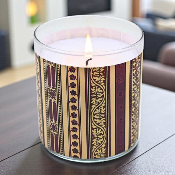 Immerse yourself in the timeless elegance of medieval design with Medieval Medley, an artisanal candle inspired by the intricate patterns from The Practical Decorator and Ornamentist (1892). This label showcases rich, symmetrical medieval patterns in regal hues of deep red, gold, and earth tones. The sophisticated design evokes a sense of classic refinement and history, bringing a touch of old-world charm to your home.