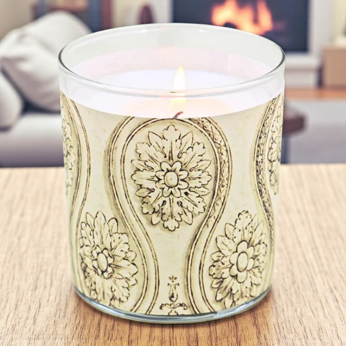 Inspired by the opulence of the Gilded Age, Serpentine evokes the grandeur of a bygone era. Encased in an ivory-hued wax, this candle embodies the elegance of ornamental motifs once found in lavish mansions of the late 1800s. Featuring an intricate design sourced from an original Smithsonian-housed illustration, it is a tribute to timeless artistry and craftsmanship.